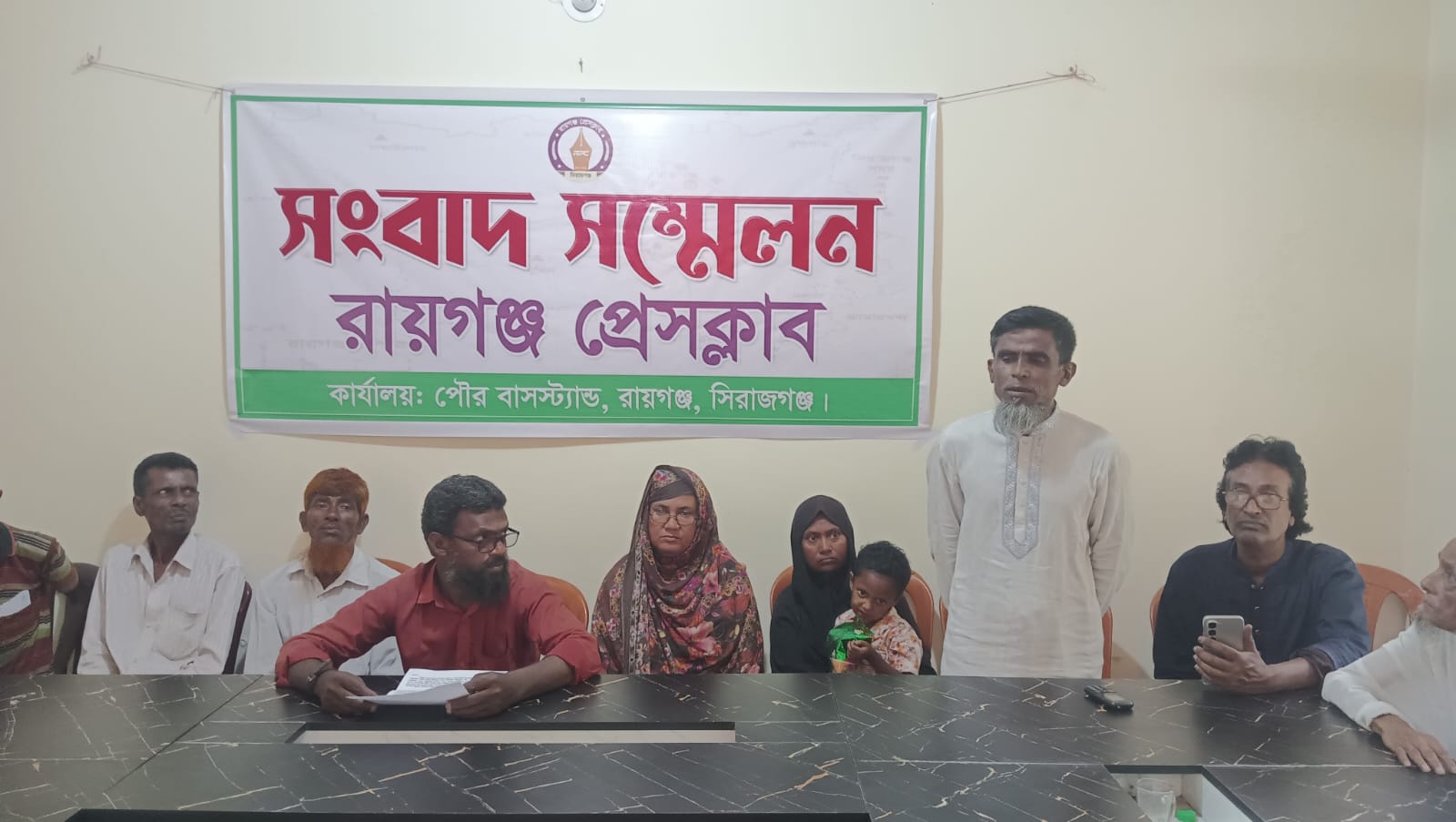 সিরাজগঞ্জের রায়গঞ্জে ধান কাটায় বাধা, মিথ্যা মামলা ও হয়রানির অভিযোগ তুলে সংবাদ সম্মেলন করেছে ভূমিহীনদের একটি সংগঠন।